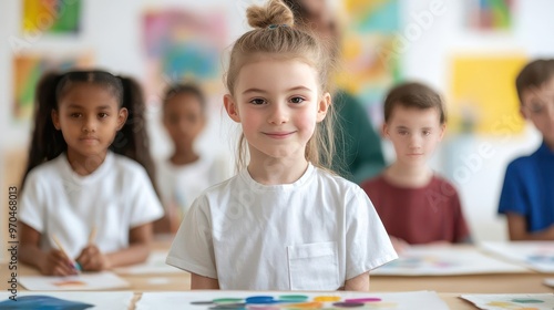 © Digital Design, Fototapeta premium A group of children participating in an art therapy session led by volunteers, art therapy, children, volunteers