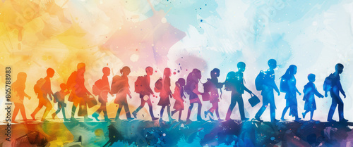 © Mr. Stocker, Fototapeta premium A group of children walking together