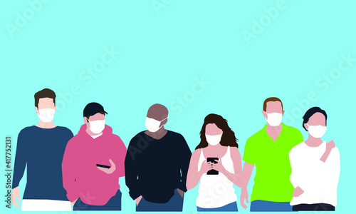 © Tuna salmon, Obraz premium A group of diverse people in new normal wearing masks.