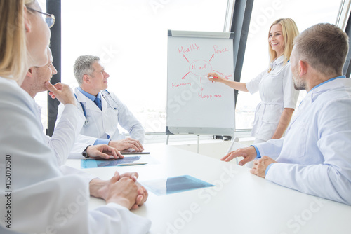 © yellowj, Fototapeta premium a group of doctors are meeting in a hospital