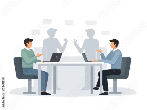 © abuizzati, Obraz premium A group of faceless business professionals, engaged in conversation around a table, representing teamwork and brainstorming