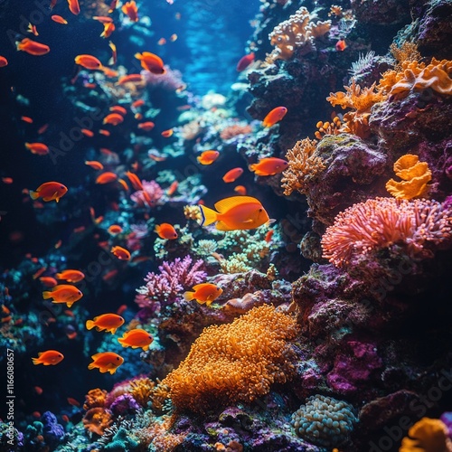 Fototapeta premium A group of fish swimming together in an aquarium setting