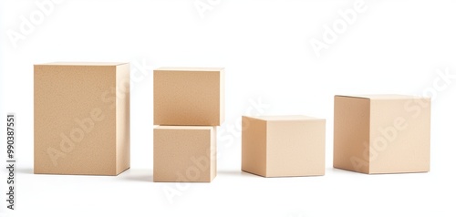 © JP STUDIO LAB, Obraz premium A group of five cardboard boxes in various sizes, minimalistic packaging design, clean and modern look, isolated on white background