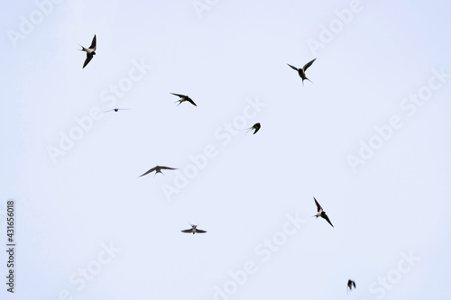Fototapeta premium a group of flying swallows in the air in spring