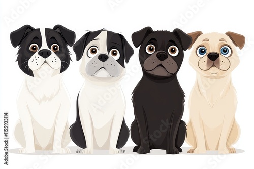 © Janis, Naklejka premium A group of four dogs sitting next to each other