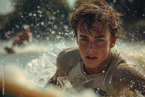 © create, Obraz premium A group of friends enjoying a day of wakeboarding, the wakeboarder carving through the water with style