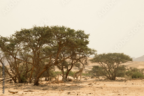 © hungry_herbivore, Obraz premium A group of giraffes resting under the tree in Namibia, Erongo