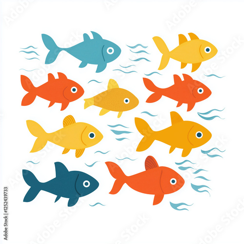 © Nobelus, Naklejka premium A group of goldfish swimming in water, depicted in a clean, modern vector style with vibrant colors and flowing water details.