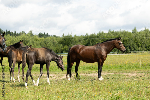 © PhotoFed, Obraz premium A group of horses grazing in a green field.