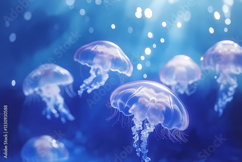 Fototapeta premium A group of jellyfish are floating in the ocean