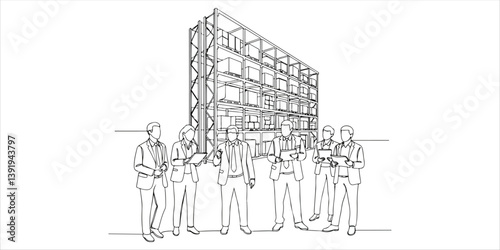 © Bigbambe, Fototapeta premium A group of managers arrives at the warehouse for an inspection, evaluating operations and ensuring efficiency in the facility’s workflow and management.
