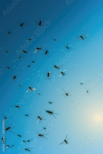 Fototapeta premium A group of mosquitoes flying in the sky. Suitable for scientific publications