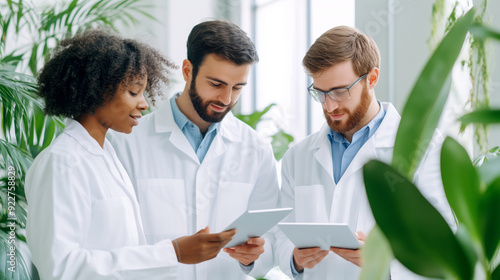 © Kateryna, Fototapeta premium A group of multicultural scientists in a tropical rainforest collecting data on biodiversity, highlighting scientific exploration, collaboration, and environmental stewardship, sci