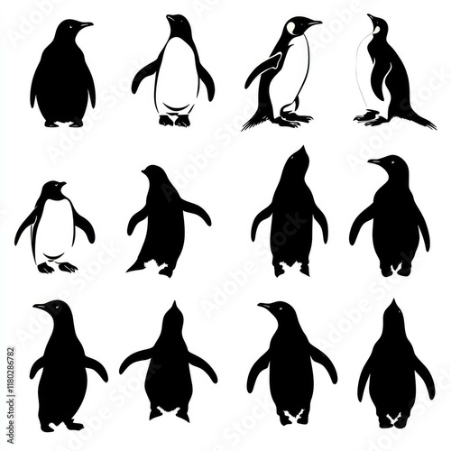 Naklejka premium A group of penguins standing side by side in a natural setting
