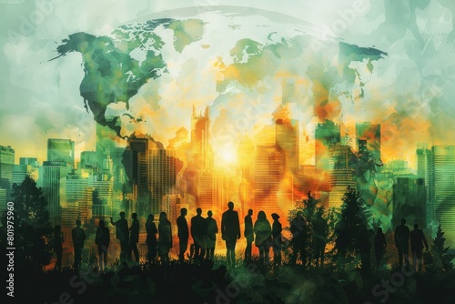 © Thanyaporn, Fototapeta premium A group of people are standing on a hill overlooking a city