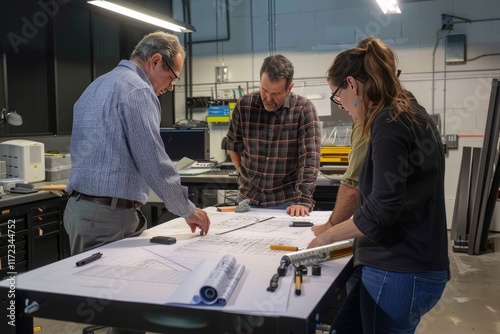 © Mustika, Obraz premium A group of professionals collaborating over blueprints in a workspace.