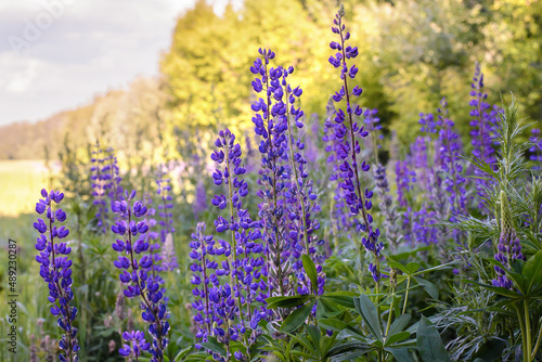 © Elvira, Naklejka premium A group of purple lupins in a field