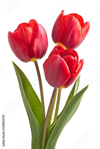 © Creative Design , Naklejka premium a group of red tulips with green leaves