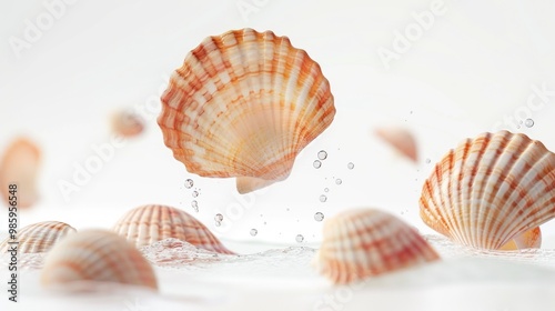 © Fotograf, Obraz premium A group of seashells floating gently on the surface of calm water