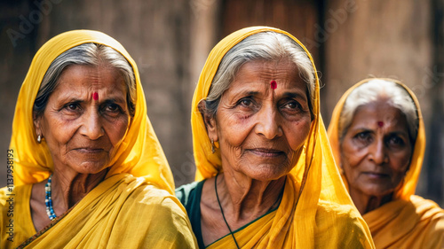 Naklejka premium A group of smiling old women dressed in yellow