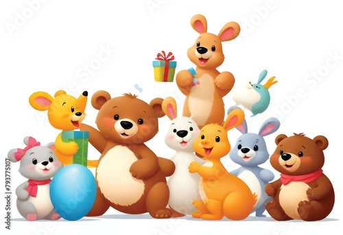 Naklejka premium a group of stuffed animals are standing in front of a white background