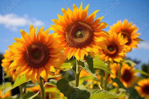 © gankevstock, Obraz premium A group of sunflowers towering over the other flowers in a sunny field