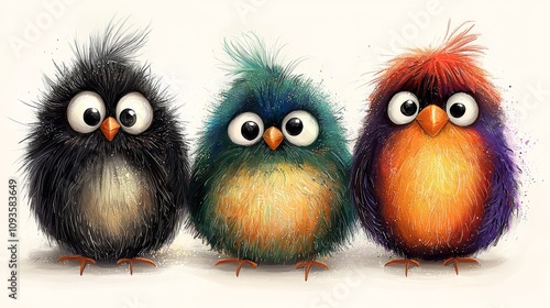 © Albert, Fototapeta premium A group of three colorful birds sitting next to each other