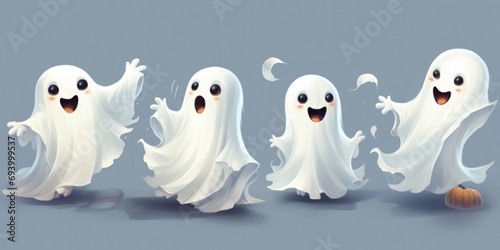 Obraz premium A group of three ghosts standing together. Perfect for Halloween decorations and spooky-themed projects