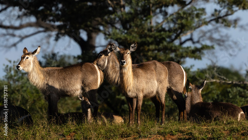 © Louis, Fototapeta premium A group of waterbuck cows standing in the early morning sun