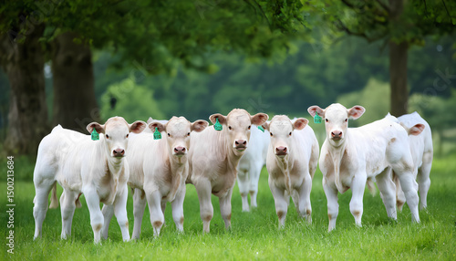 © Andrey, Obraz premium A group of white cows are standing in a field