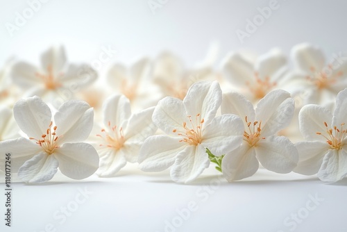 © Fotograf, Obraz premium A group of white flowers arranged on a clean white surface, suitable for use in designs and presentations
