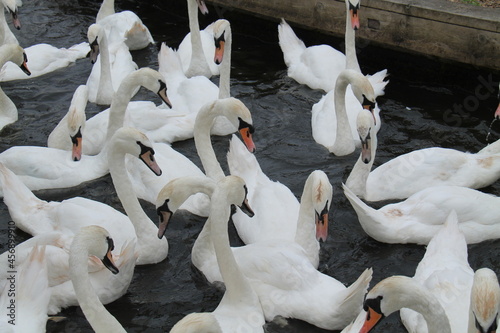 © daseaford, Obraz premium A Group of White Swans Together on the Water.