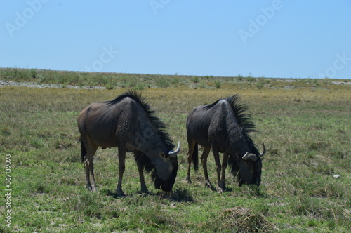 Fototapeta premium A group of Wildebeest with their calves playing in Etosha National Park, Namibia