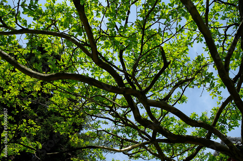 Fototapeta premium A grove of trees in the backyard of a Buddhist temple