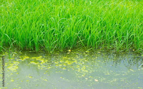 © yongyut, Fototapeta premium A growing group of green rice plants