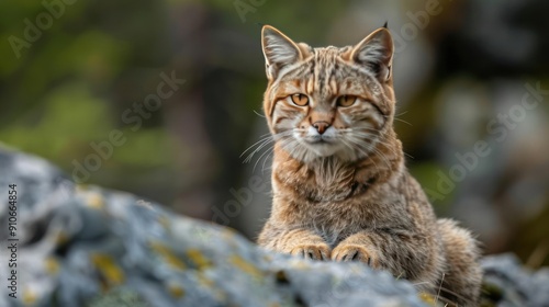 Fototapeta premium A grumpy looking wild cat in a natural setting.