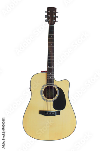 © nongpriya, Obraz premium A guitar isolated on a white background. Cilpping path