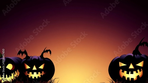 Fototapeta premium A Halloween themed background with three pumpkins on it