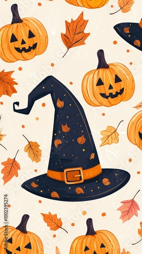 Fototapeta premium A Halloween themed design featuring a black hat with a pumpkin on top