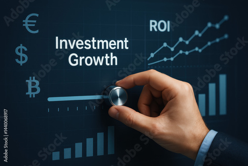 Fototapeta premium A hand adjusts an investment slider on a digital interface illustrating strategy and business growth emphasizing efficient decision making toward higher ROI
