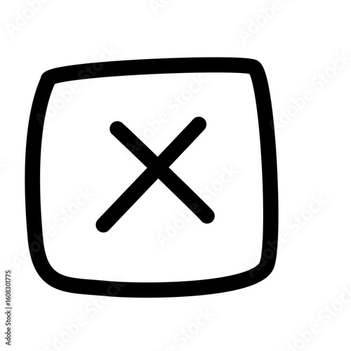 Obraz premium : A hand-drawn black X mark inside a square frame. 2D flat icon representing...