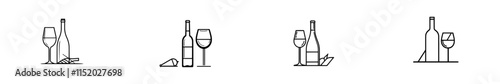 © Andrei, Naklejka premium A hand-drawn, engraved sketch of a wine bottle and glass in a modern illustration style.