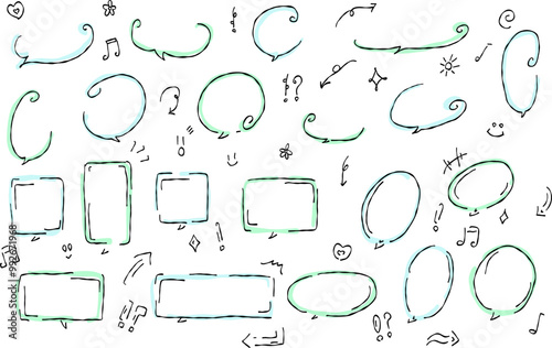 Fototapeta premium A hand-drawn speech bubble and decoration set. Features a green and blue-based design, perfect for emphasizing messages or comments.