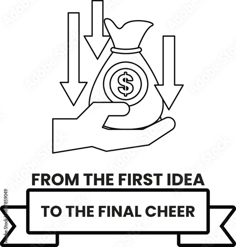 Fototapeta premium A hand holding a bag of money with a downward arrow on it