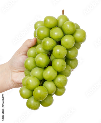 © schankz, Fototapeta premium A hand holding a bunch of green grapes