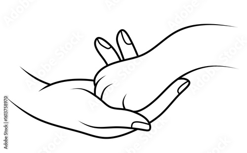 Fototapeta premium A hand holding a cat's paw, line illustration. Concept of love and care for...