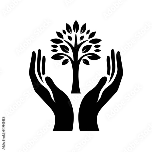 Obraz premium a hand holding tree silhouette