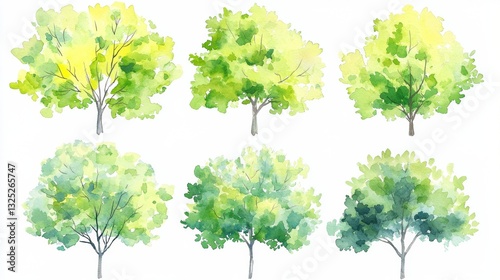 © Lonely, Fototapeta premium A hand painted watercolor collection of tree foliage