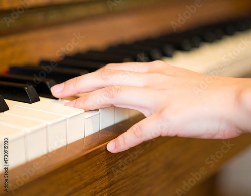 © Voli, Fototapeta premium A hand playing piano keys