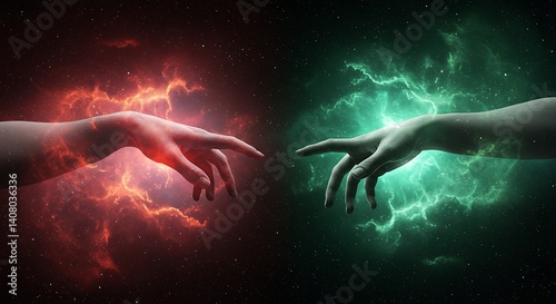 © Wanderson, Naklejka premium A hand reaching out from a nebula to touch another